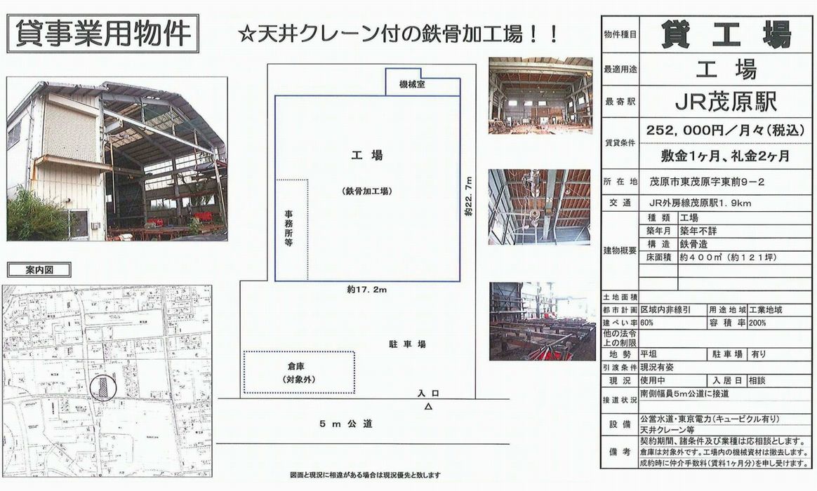 | 物件名 | 茂原貸倉庫・工場 |
