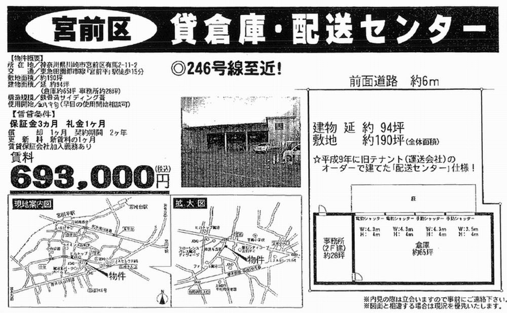 | 備考 | 246号線至近 前面道路6M 事務所有 元配送センター 条件交渉ご相談下さい。 |
