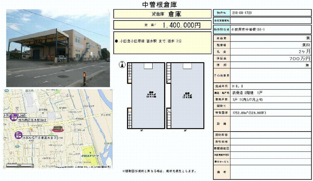 神奈川県小田原市中曽根196-1 中曽根貸倉庫・貸作業所 詳細データ