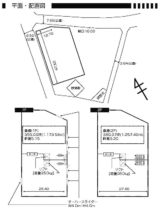 | 備考 | 天井高5M以上 1階軒高5.15m 2階軒高3.2m リフト オーバースライダー 大型車可 事務所 |