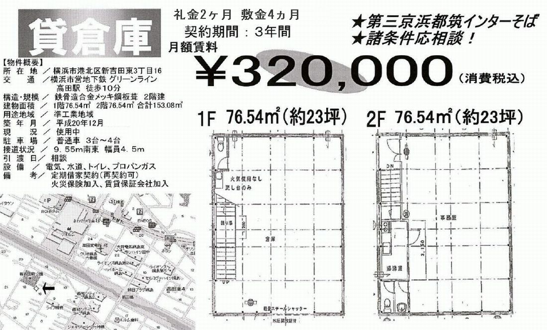 | 物件名 | 新吉田東3丁目貸倉庫・貸工場 |