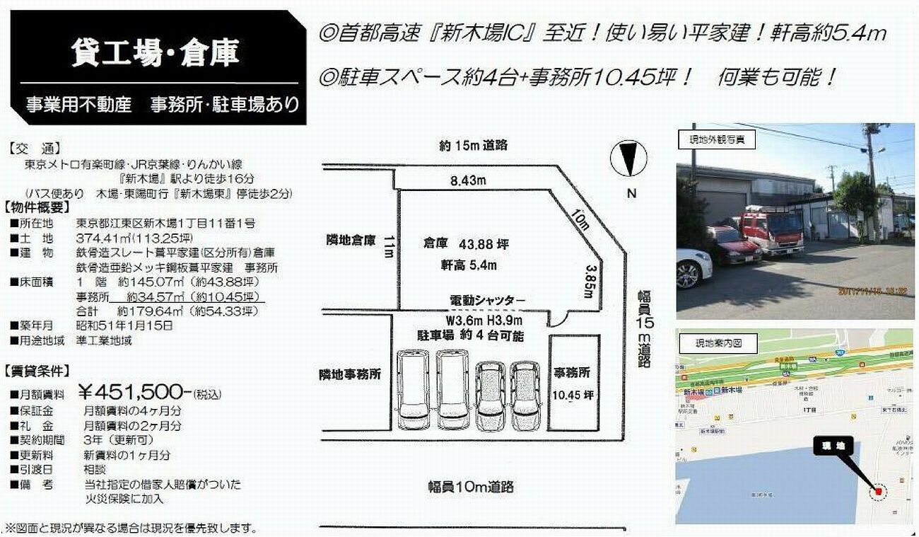東京都江東区新木場1-11-1 新木場駅 貸工場倉庫 詳細データ
