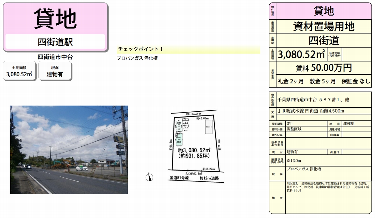 千葉県四街道市中台587-1 四街道 貸地 詳細データ