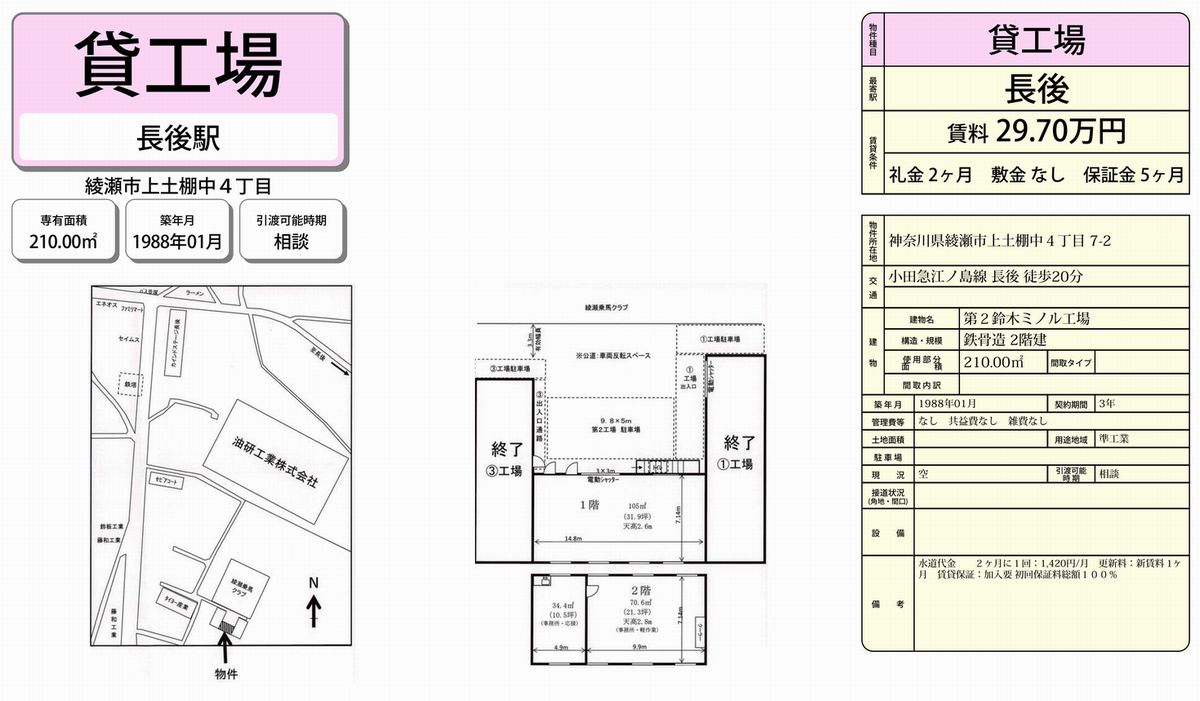 神奈川県綾瀬市上土棚中4-7-2 ミノル工場2 詳細データ