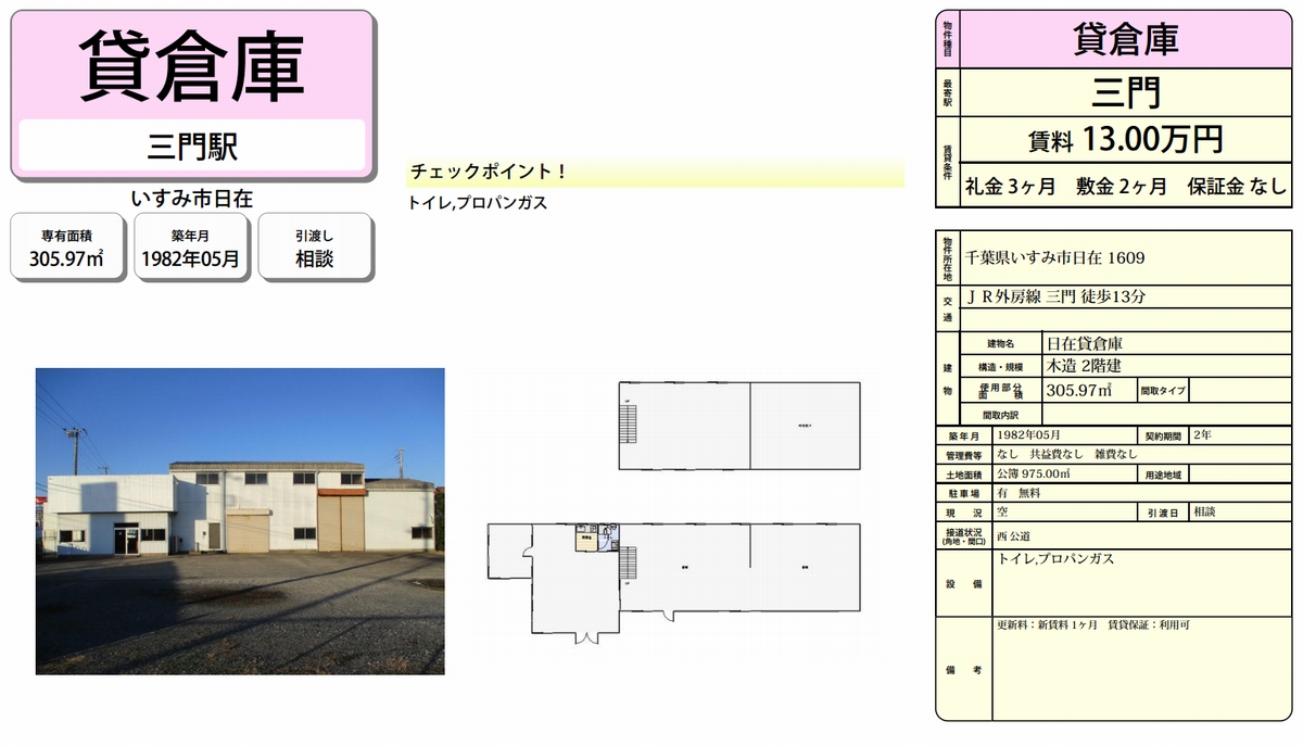 千葉県いすみ市日在1609 三門 倉庫 詳細データ