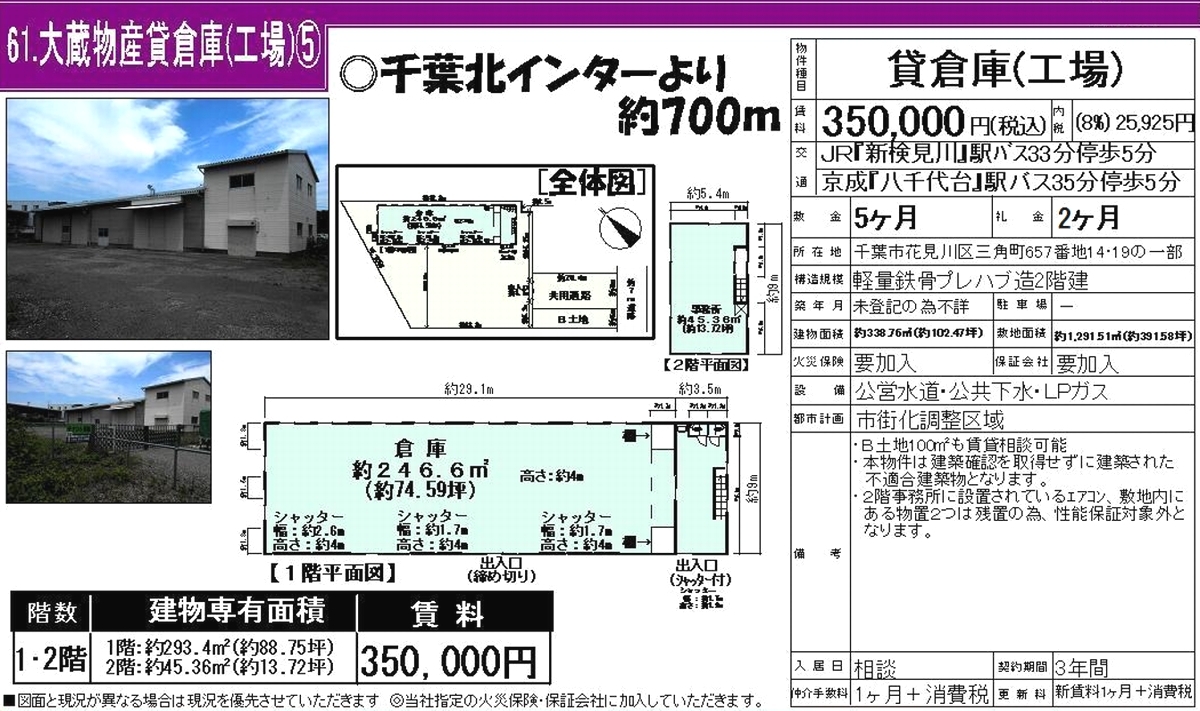 千葉県千葉市花見川区三角町567-14 大蔵物産貸倉庫5 詳細データ