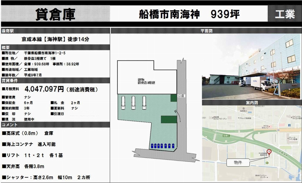 千葉県船橋市南海神1-2-5 海神 倉庫 詳細データ
