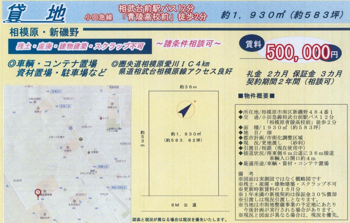 | 備考 | 車輛置き場・資材置き場・コンテナ置き場 |