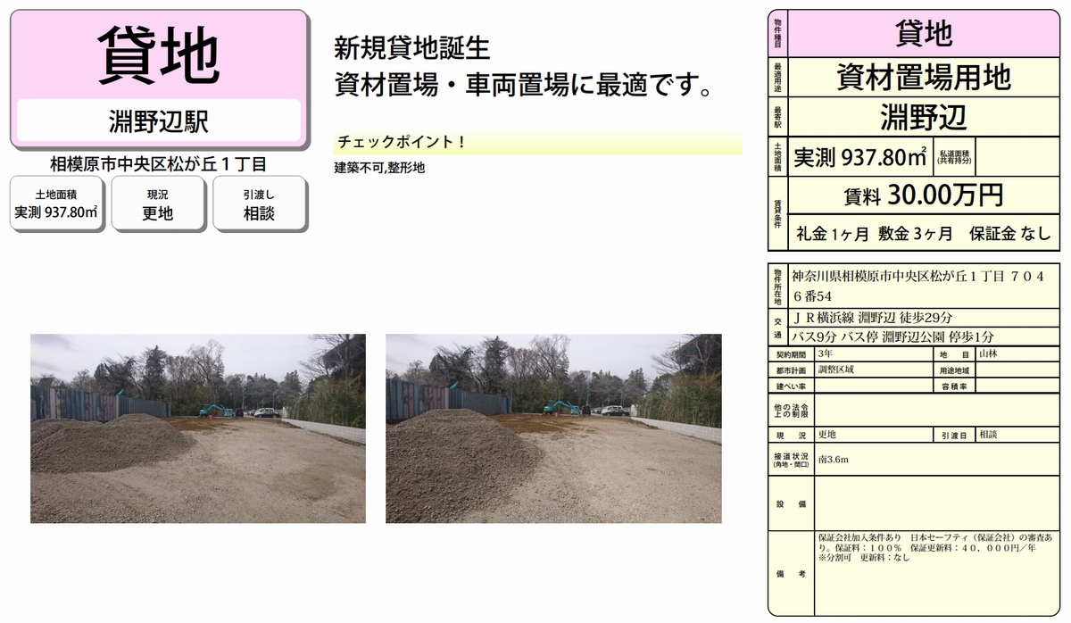 | 物件名 | 淵野辺 貸地 |