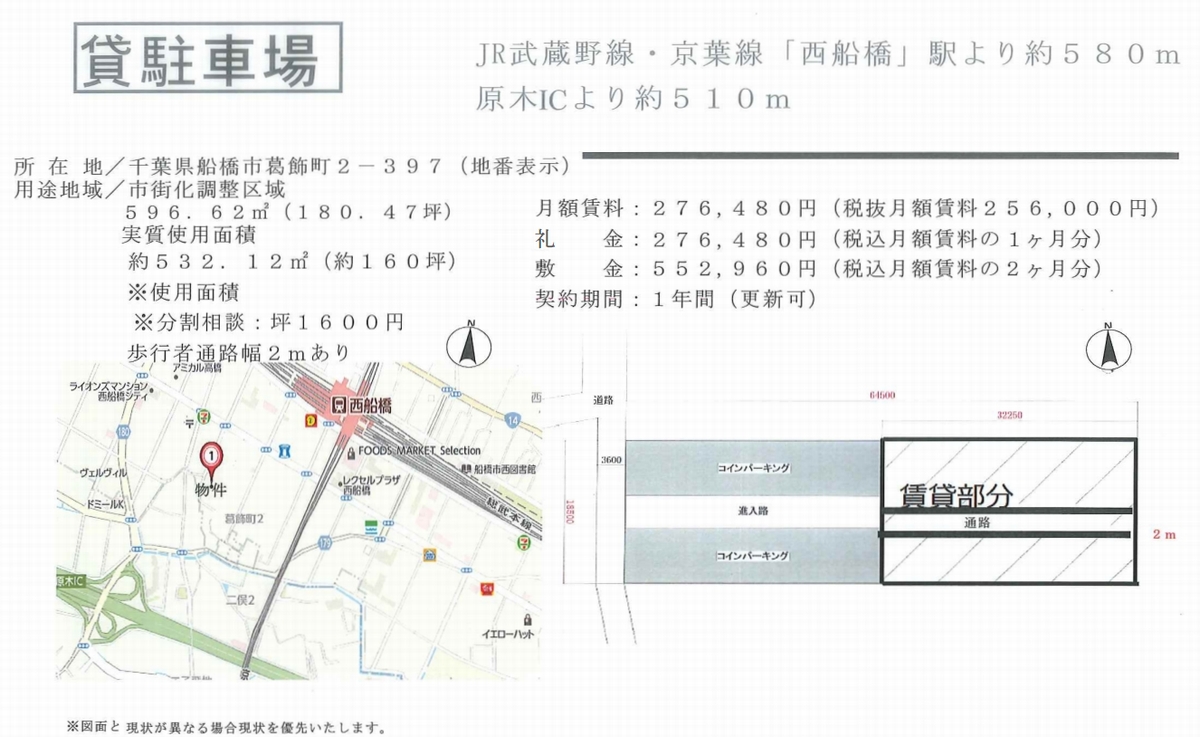 千葉県船橋市葛飾町2-397 西船橋 貸地 詳細データ