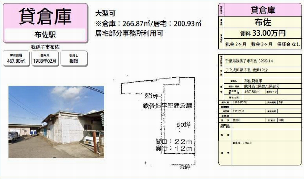 千葉県我孫子市布佐3269-14 布佐貸倉庫 詳細データ