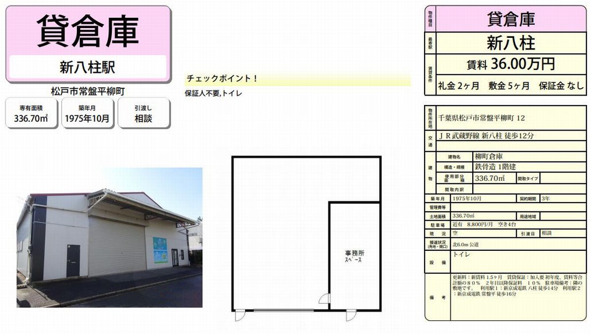 千葉県松戸市常盤平柳町12 柳町倉庫 詳細データ