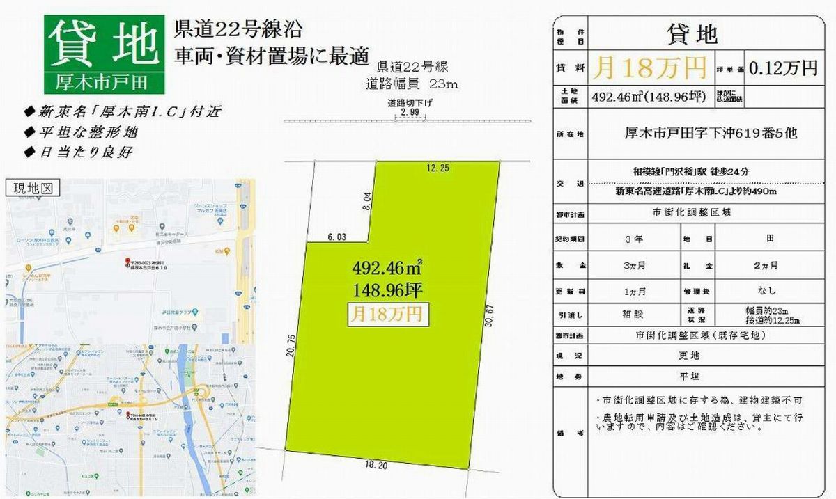 神奈川県厚木市戸田619-5 門沢橋 貸地 詳細データ