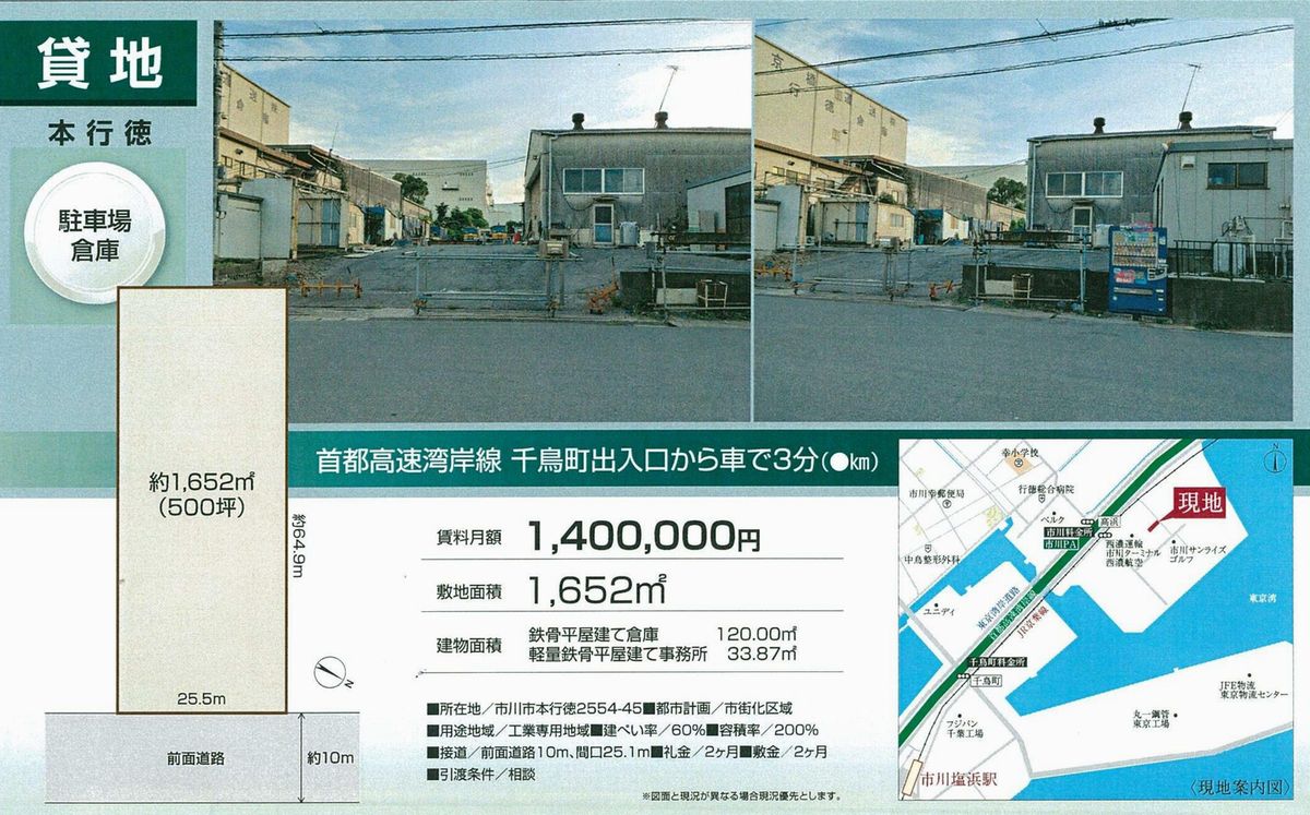 千葉県市川市本行徳2554-45 市川塩浜 貸地 詳細データ