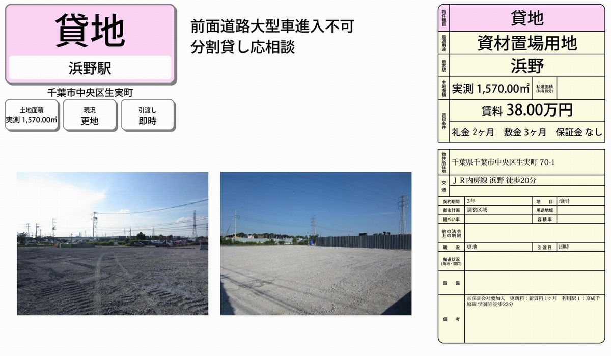 千葉県千葉市中央区生実町70-1 浜野 貸地 詳細データ