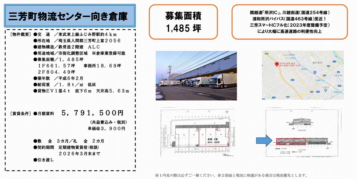埼玉県入間郡三芳町大字上富2056 ふじみ野 貸倉庫 詳細データ