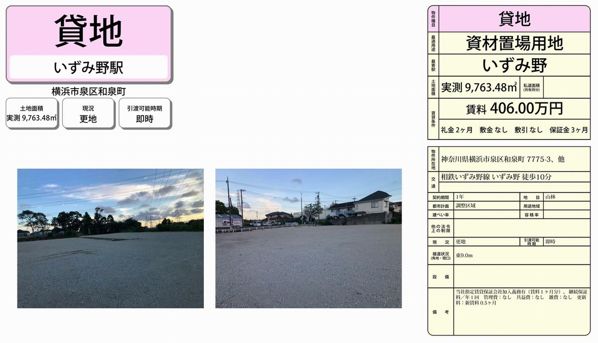 神奈川県横浜市泉区和泉町7775-3 いずみ野 貸地 詳細データ