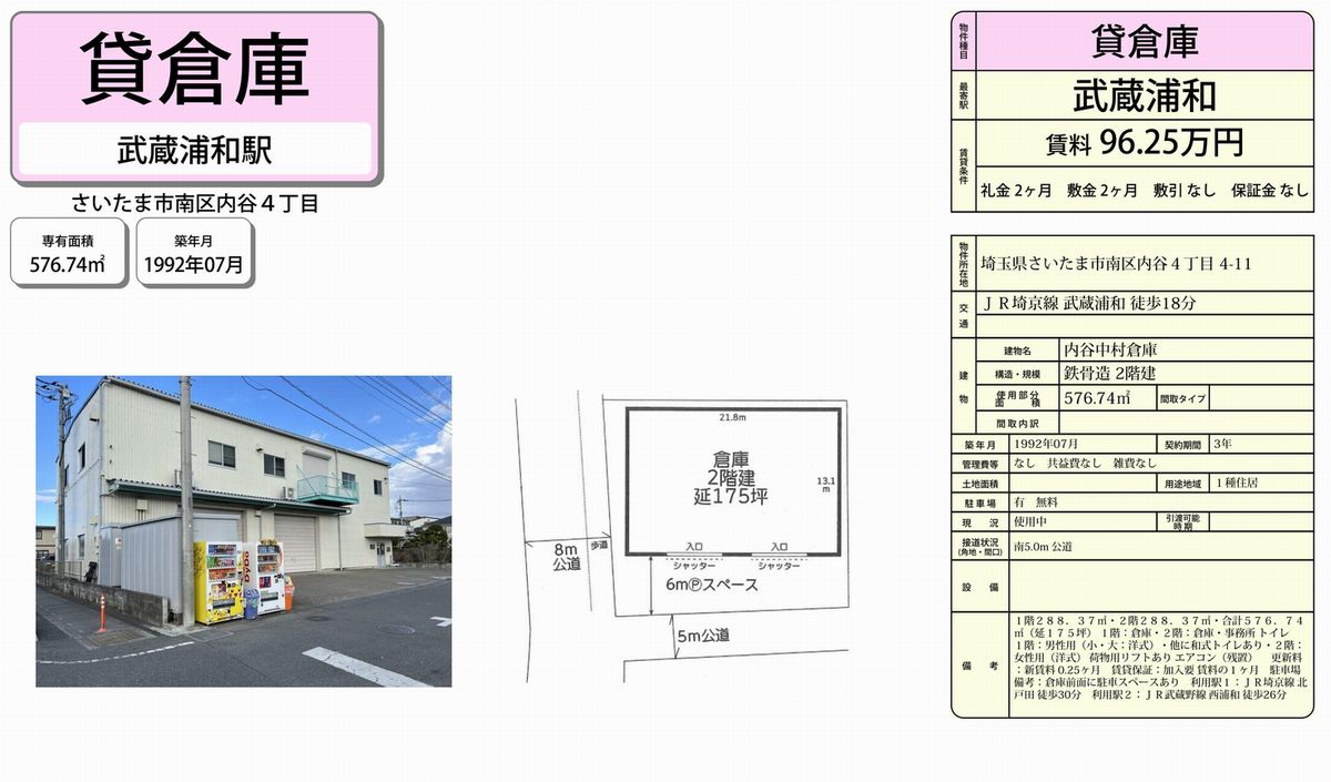 埼玉県さいたま市南区内谷4-4-11 中村倉庫 詳細データ