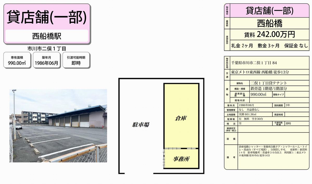 千葉県市川市二俣1-84 西船橋 貸倉庫 詳細データ