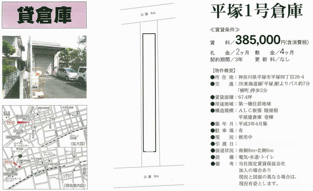 神奈川県平塚市平塚4-26-4 平塚1号倉庫 詳細データ