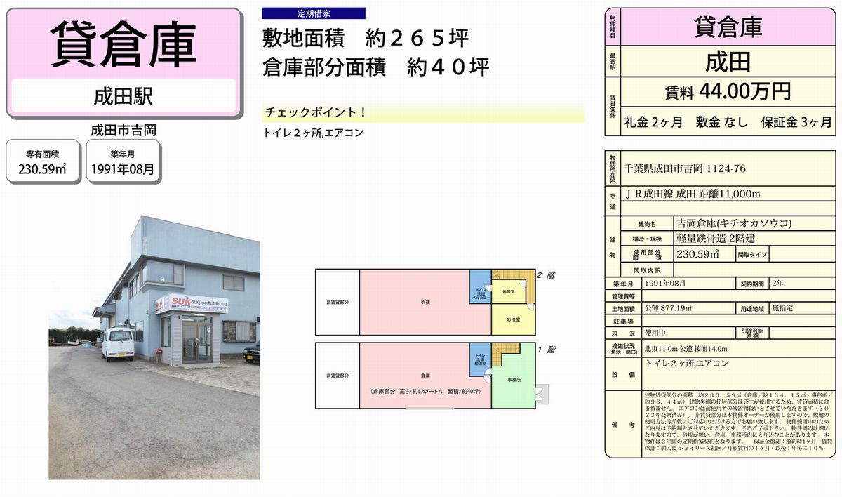 千葉県成田市吉岡1124-76 吉岡倉庫 詳細データ