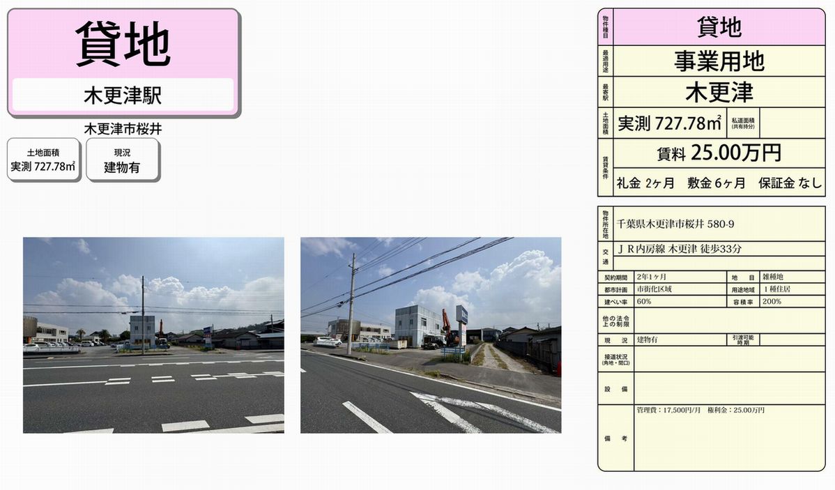 千葉県木更津市桜井580-9 木更津 貸地 詳細データ