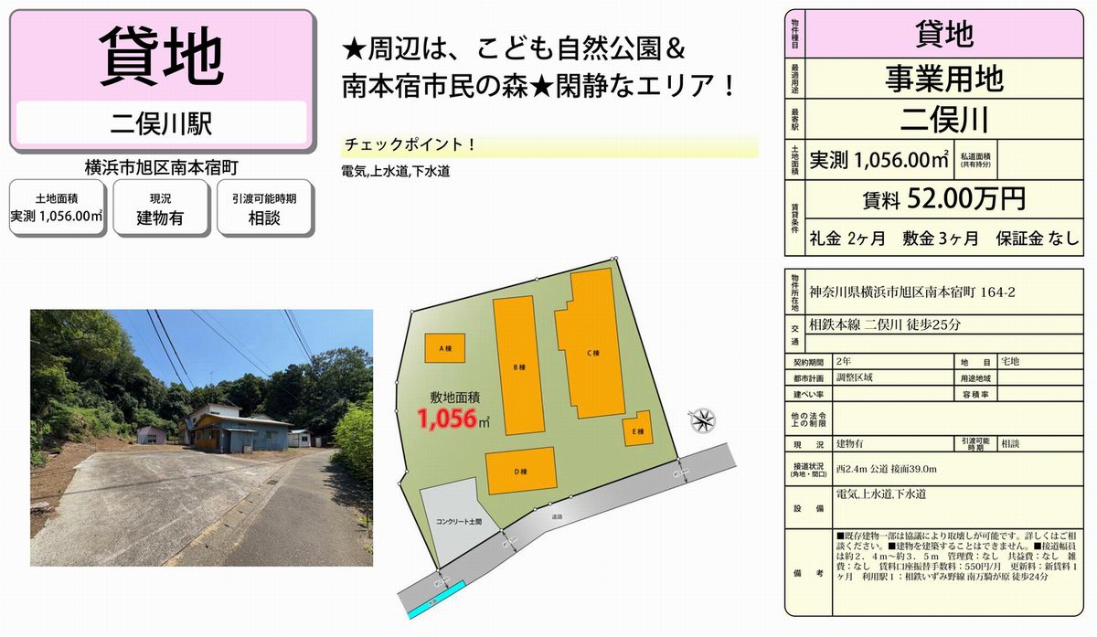 神奈川県横浜市旭区南本宿町164-2 二俣川 貸地 詳細データ