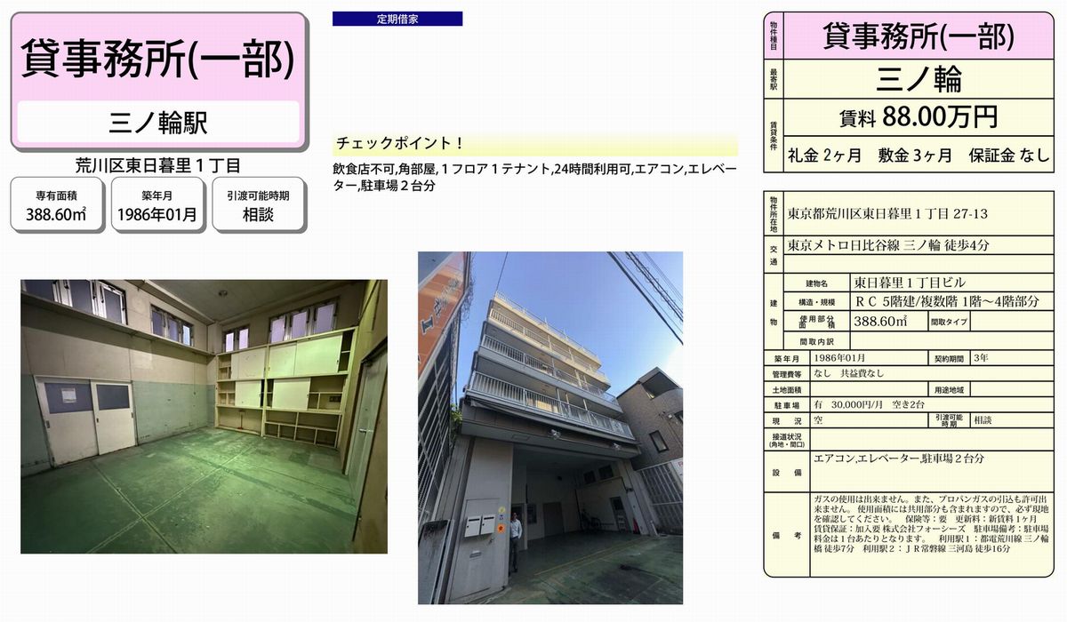 東京都荒川区東日暮里1-27-13 東日暮里1丁目ビル 詳細データ