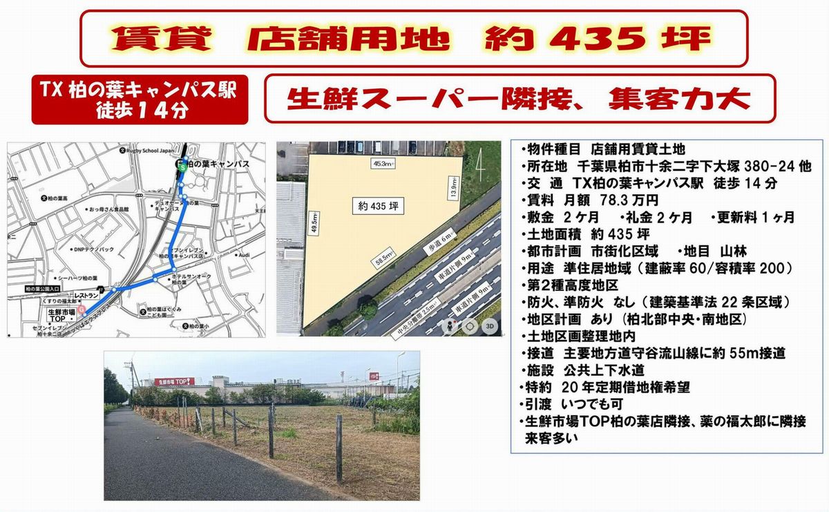 千葉県柏市十余二380-24 柏の葉キャンパス 貸地 詳細データ