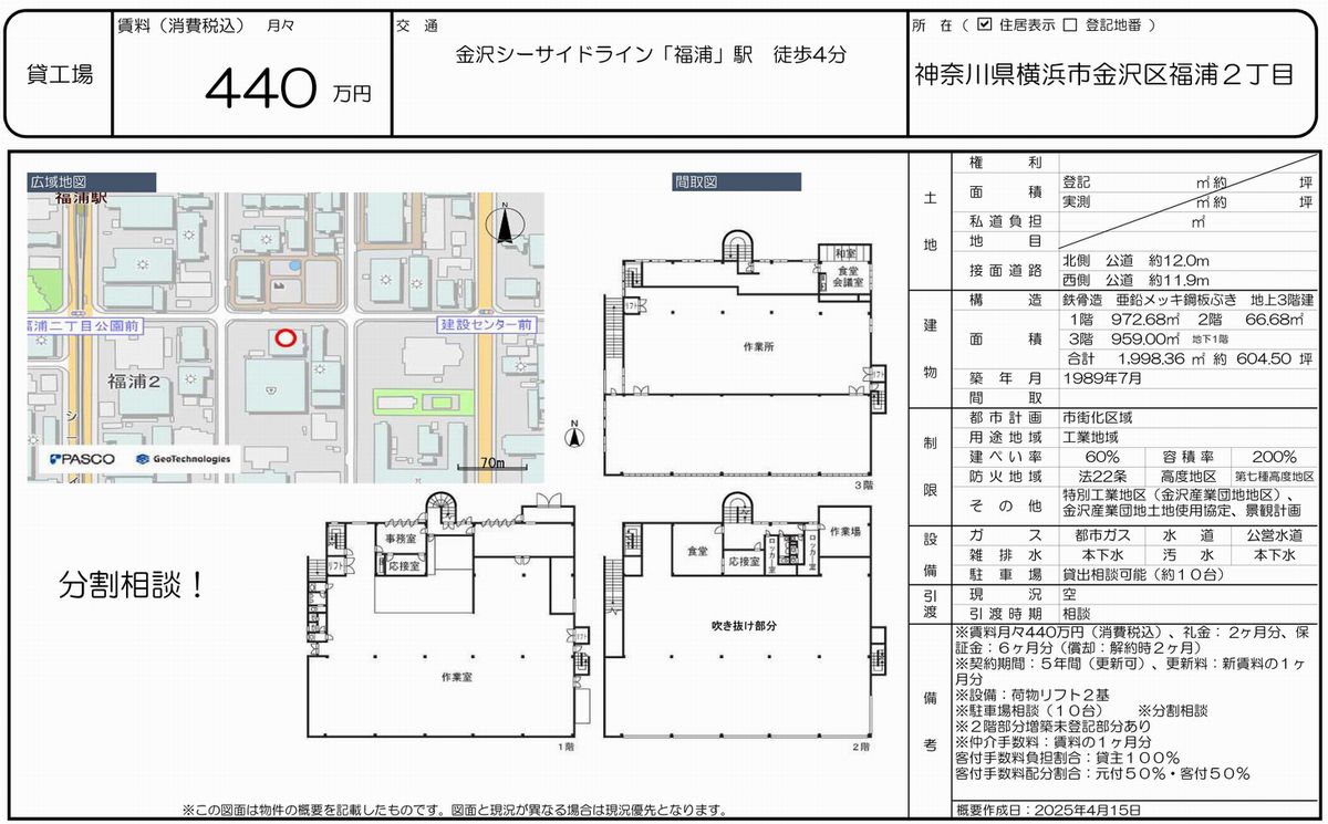 神奈川県横浜市金沢区福浦2-9-1 福浦 貸倉庫 詳細データ