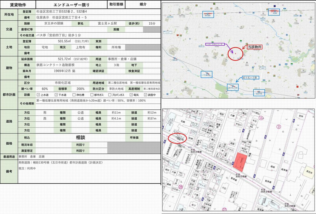 東京都杉並区宮前3-4-5 富士見ヶ丘 貸倉庫 詳細データ