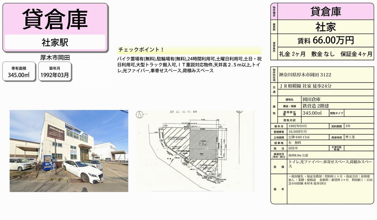 神奈川県厚木市岡田3122 岡田倉庫 詳細データ