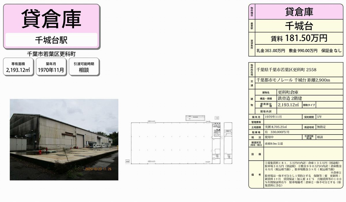 千葉県千葉市若葉区更科町2558 更科町倉庫 詳細データ