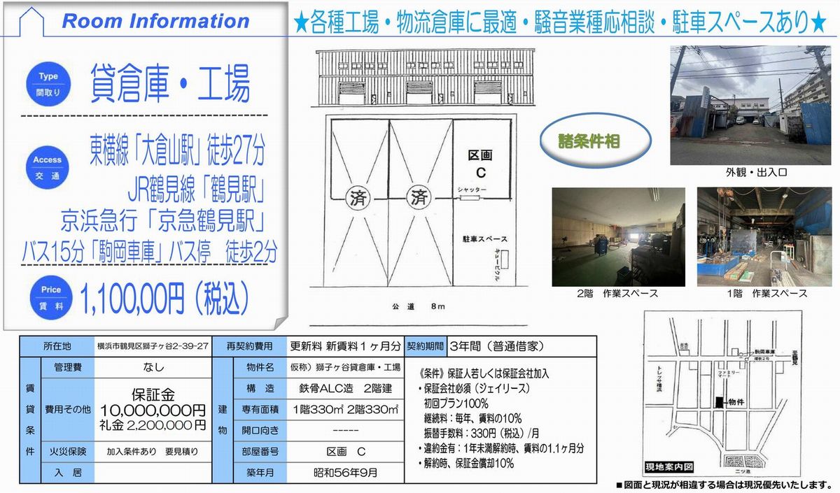 神奈川県横浜市鶴見区獅子ケ谷2-39-27 大倉山 貸工場C 詳細データ