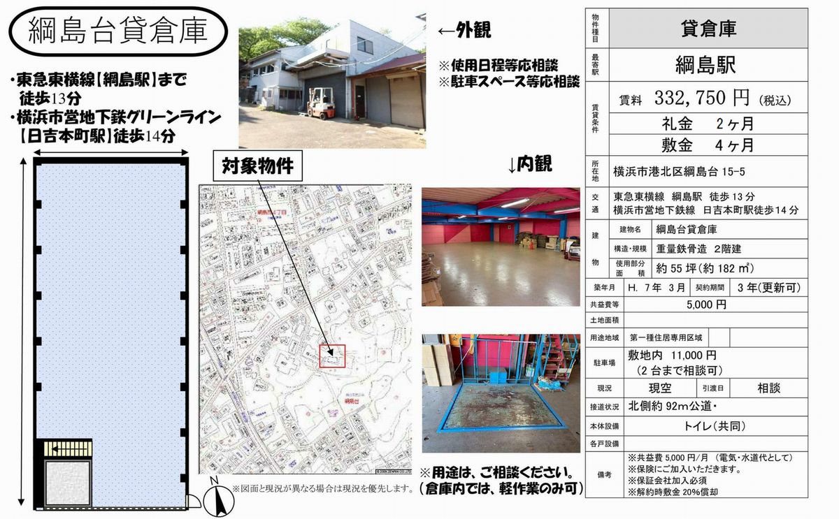 神奈川県横浜市港北区綱島台15-5 綱島 貸倉庫 詳細データ