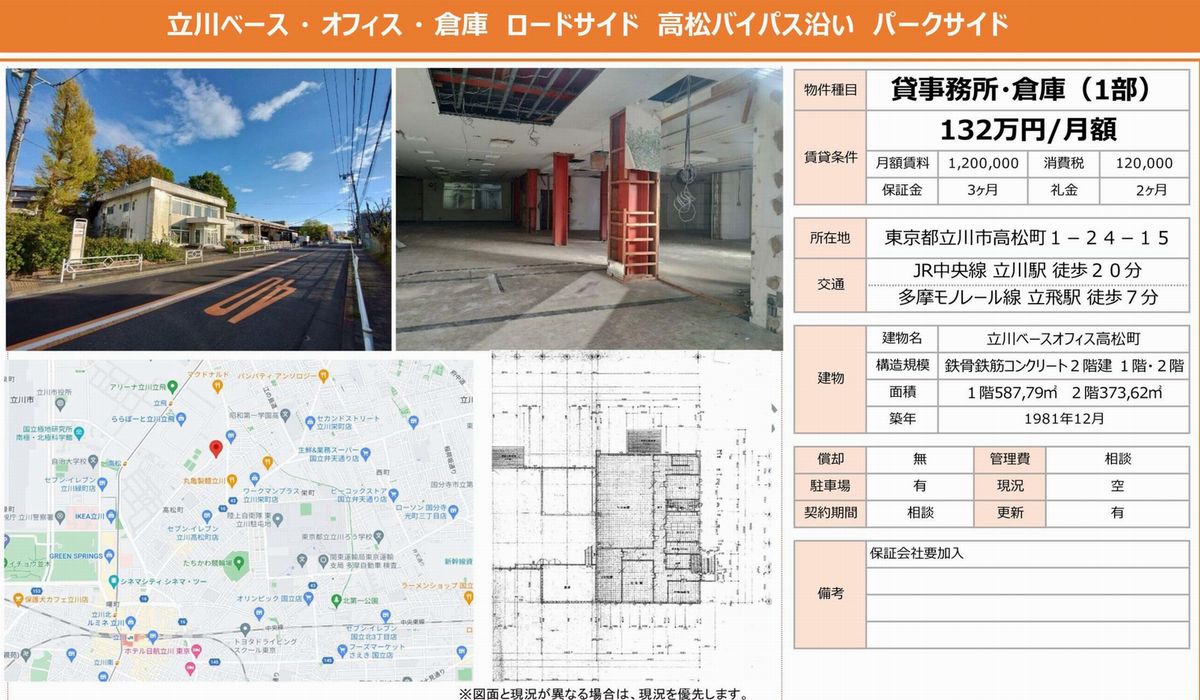 東京都立川市高松町1-24-15 立川 貸倉庫 詳細データ