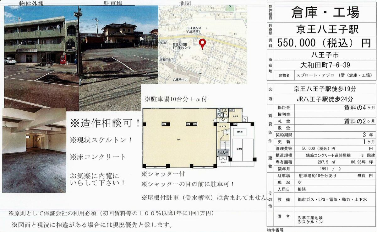 東京都八王子市大和田町7-6-39 京王八王子 貸工場 詳細データ