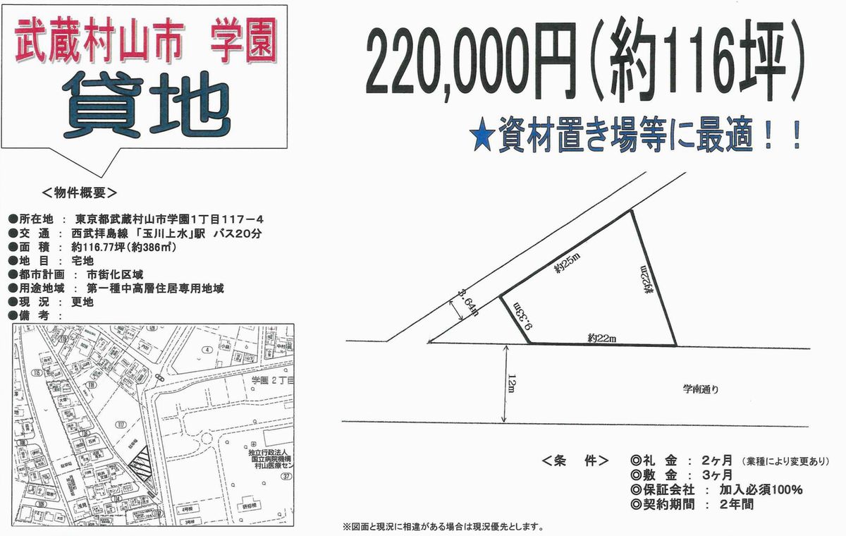 東京都武蔵村山市学園1-117 玉川上水 貸地 詳細データ