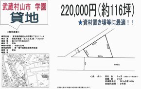 トップページ > 物件検索 > 東京都 の貸倉庫・貸工場 > 武蔵村山市 の貸倉庫・貸工場 > 武蔵村山市学園1-117 玉川上水 貸地