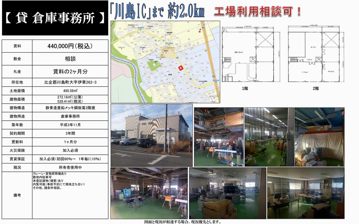 埼玉県比企郡川島町伊草262-3 鶴ヶ島 貸倉庫 詳細データ