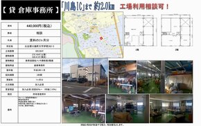 テナントSNAPでは埼玉県比企郡川島町伊草262-3をはじめ、東京・神奈川・千葉・埼玉・横浜・川崎等、首都圏を中心に貸し倉庫・工場・貸し土地の情報を簡単検索。埼玉県比企郡川島町伊草262-3のクレーン付、キュービクル、工業地域の貸倉庫・貸工場も情報満載!埼玉県比企郡川島町伊草262-3で貸し倉庫・貸し工場・貸地・貸倉庫・貸工場・貸地は物件数No1のテナントSNAPにお任せ下さい。その他、埼玉県比企郡川島町伊草262-3で貸し倉庫・工場・貸し土地を所有のオーナー様には無料で貸し倉庫・貸し工場の広告を掲載致します。貸し倉庫・工場・貸し土地を貸したい方も是非、テナントSNAPにお任せ下さい。 |