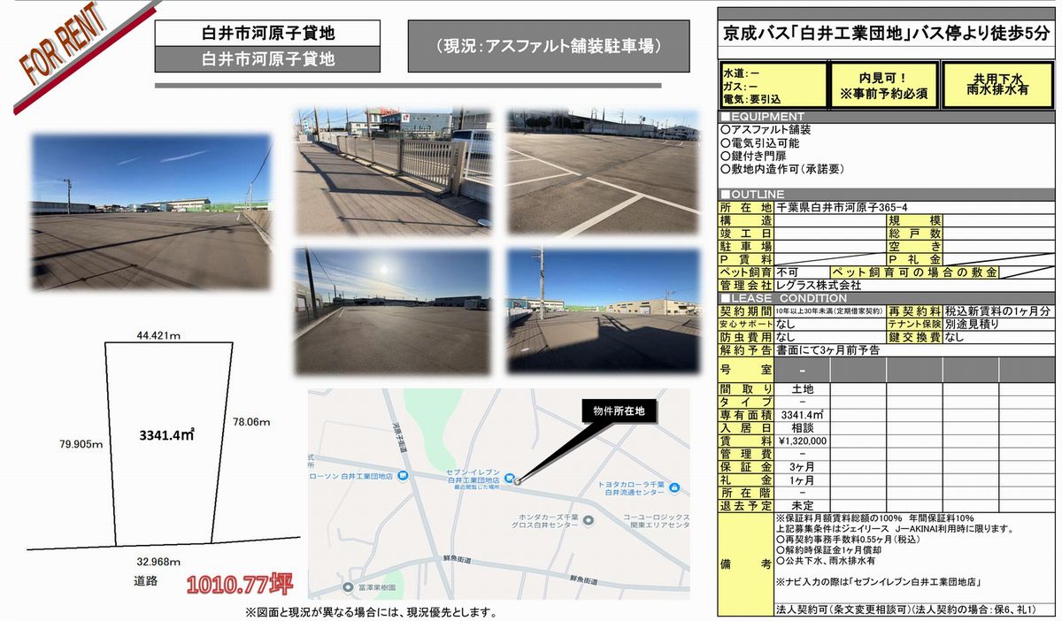トップページ > 物件検索 > 千葉県 の貸倉庫・貸工場 > 白井市 の貸倉庫・貸工場 > 白井市河原子365-4 小室 貸地