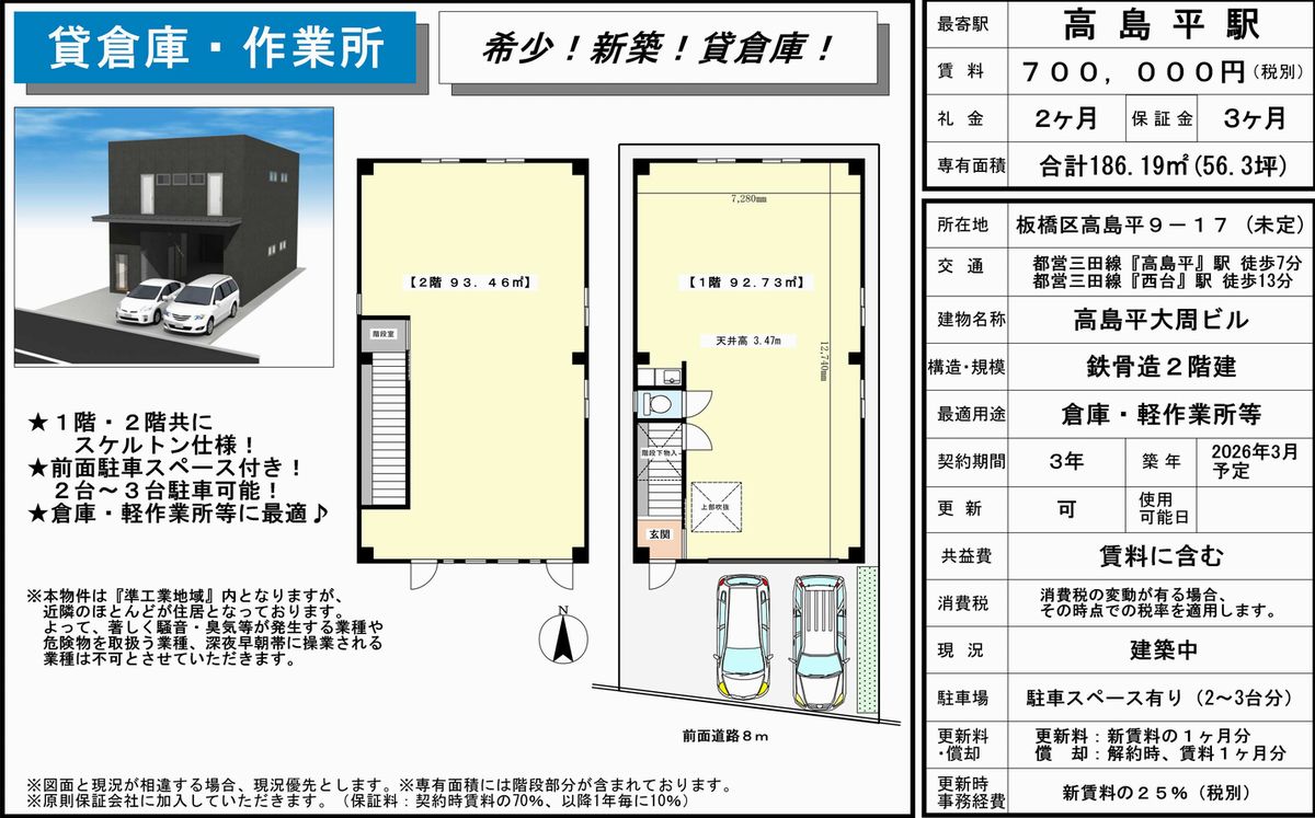 トップページ > 物件検索 > 東京都 の貸倉庫・貸工場 > 板橋区 の貸倉庫・貸工場 > 板橋区高島平9-17 高島平大周ビル