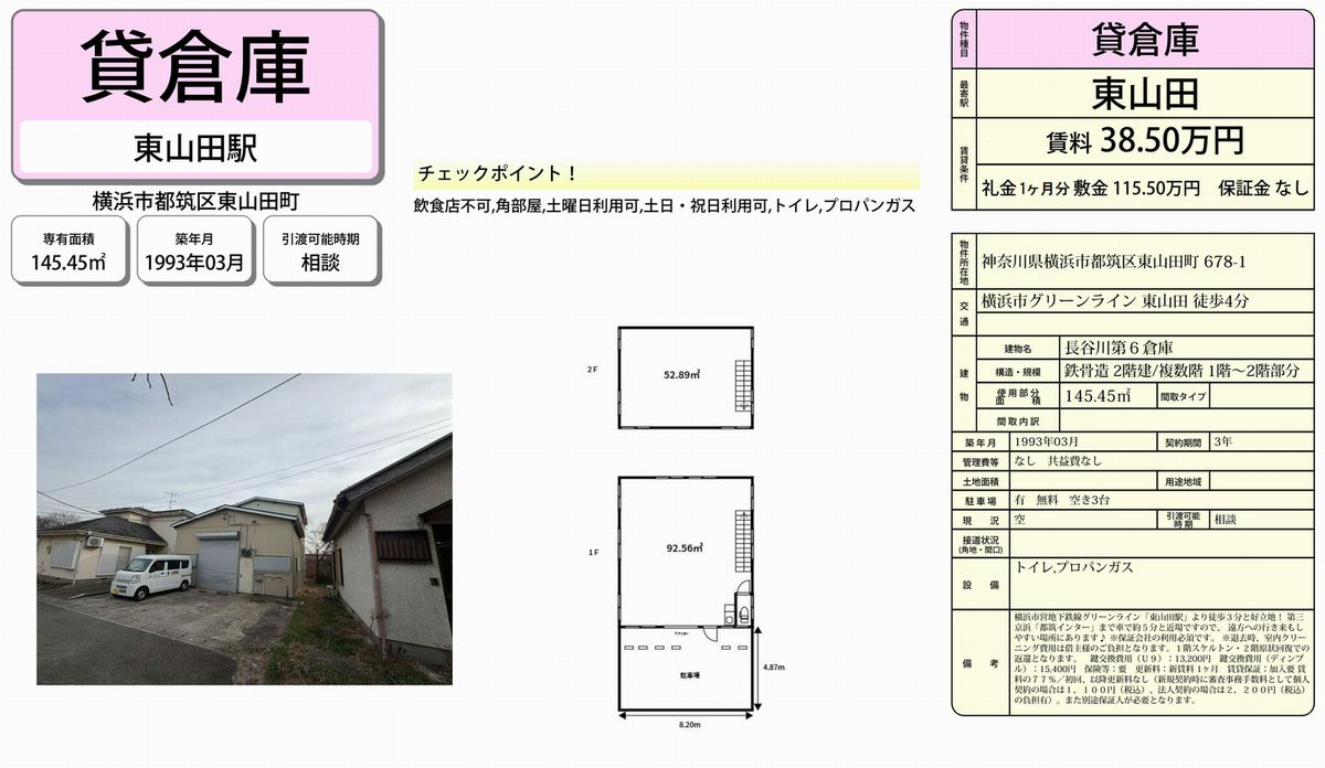 神奈川県横浜市都筑区東山田町678-1 長谷川第6倉庫 詳細データ