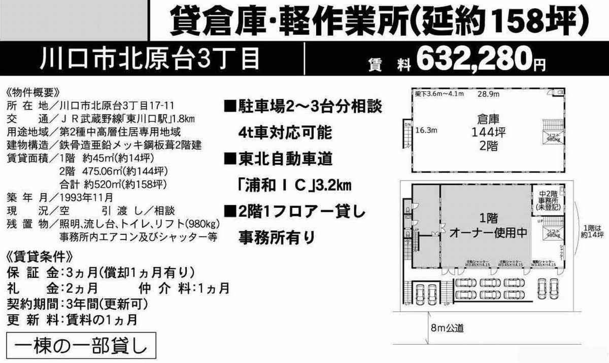 | 物件名 | 東川口 貸倉庫 |