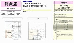 | 備考 | 天井高5M以上 男女別トイレ フォークリフト充電スポット有 最大900坪まで可能 10t車6台搬入可 |