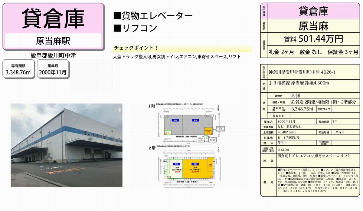 神奈川県愛甲郡愛川町中津4026-1 原当麻 貸倉庫 詳細データ