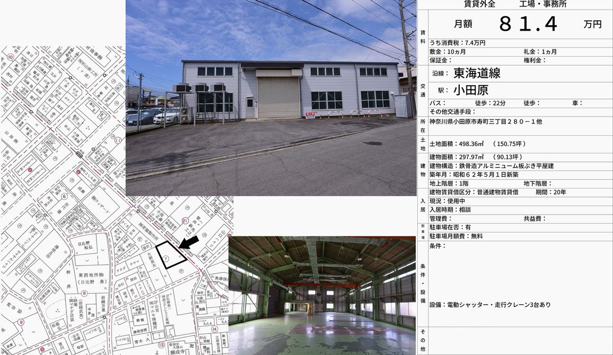 神奈川県小田原市寿町3-7-10 小田原 貸工場 詳細データ