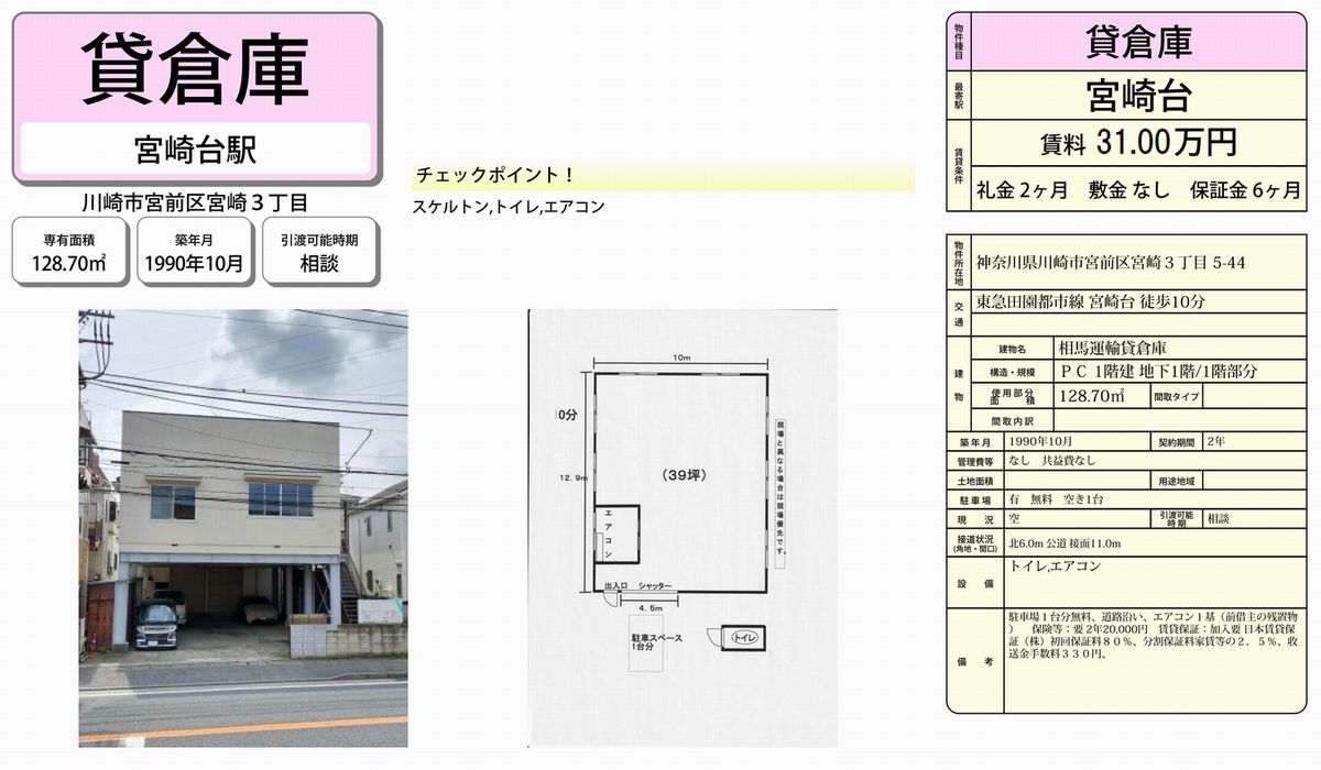 神奈川県川崎市宮前区宮崎3-5-44 相馬運輸貸倉庫 詳細データ