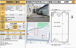 | 賃料(坪・円) | 坪 7,890 円 (総額 473,000 円) |